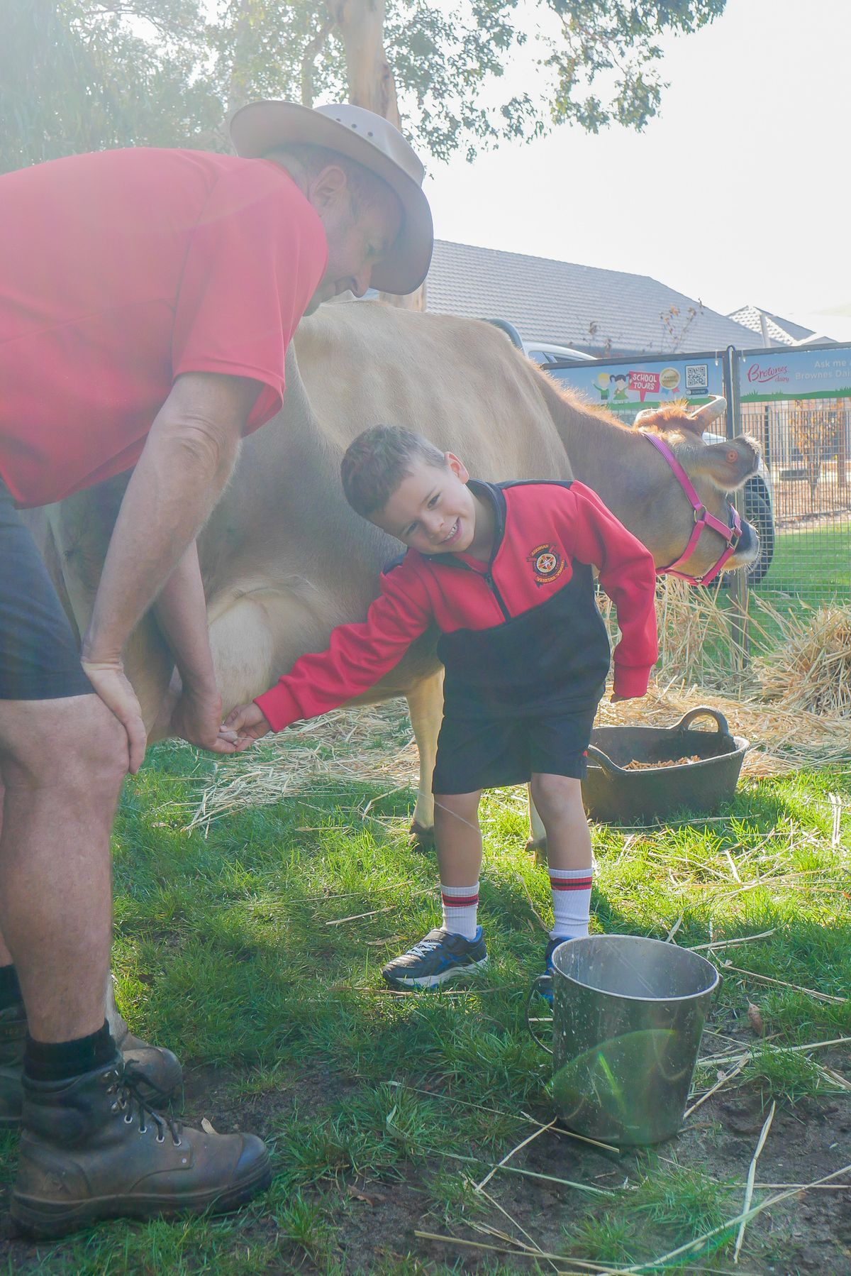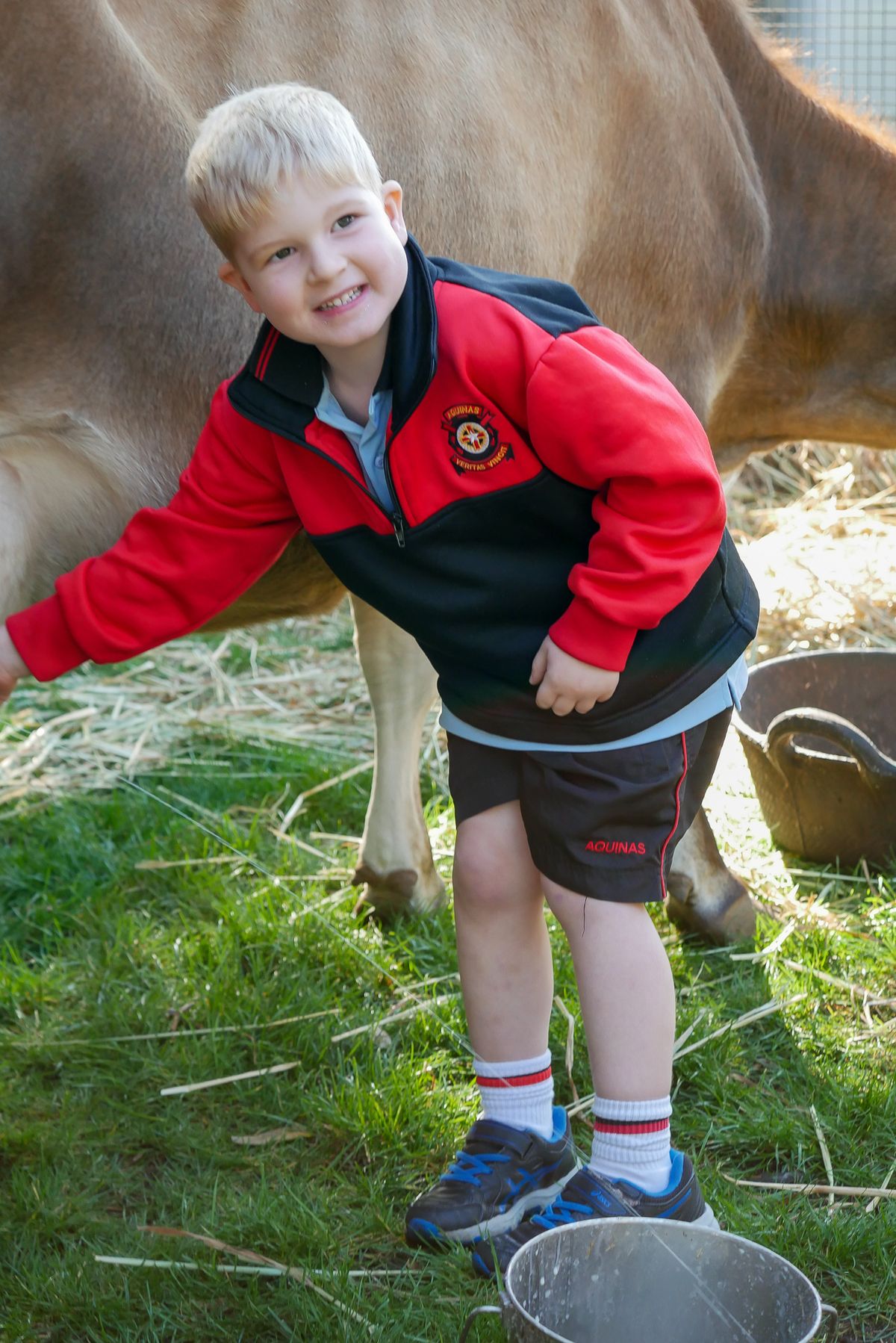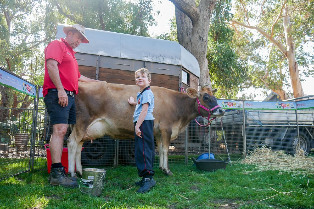 On Tuesday 10 May, the K-3 boys had a rather exciting morning when Brownes Dairy visited the College to teach the boys all about how we get our milk! Along with Farmer Damian were Curly Sue (a Murray River Retriever) and Belinda (a jersey cow).