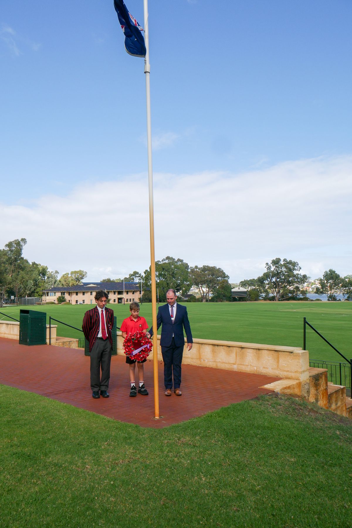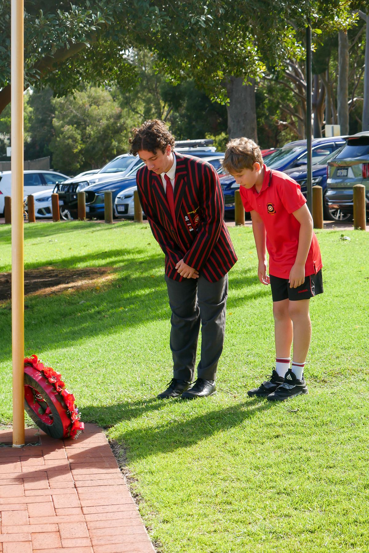This week, Aquinas College will be acknowledging Anzac Day through a variety of smaller ceremonies which are appropriate given our Term 2 COVID-19 protocols. These ceremonies will honour the lives of all who served during war, as well as the remembrance of all Australians killed in military operations; including those who have served through recent conflicts and on peacekeeping missions. To commence these ceremonies, College Captain Ashton Teixeira and Year 6 student Lachlan Harney joined Mr Brendan Chapman in laying the wreath.