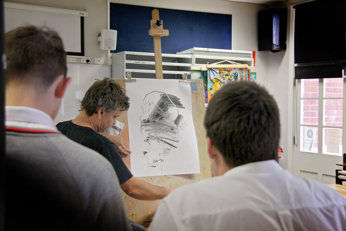 At the end of Week 5 Term 4, the Visual Arts ATAR students had the opportunity to attend an artist workshop incursion with well known WA artist Andy Quilty. Andy has been highly engaged and active in the art community in WA for a number of years now and is a regular lecturer at the University of Western Australia, where he teaches several units in the Fine Arts Major.