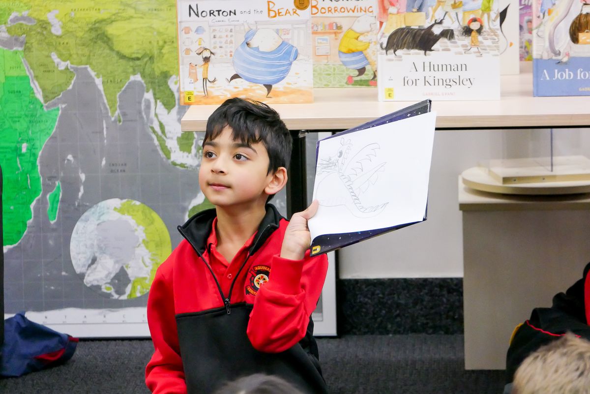On Tuesday 2 August 2022, we welcomed children's book author and illustrator Gabriel Evans to the College to show the Junior School boys how to create a picture book. Gabriel spoke about the process of coming up with characters, a story line and how he turns it all into a book. He even guided the boys to illustrate their own characters, like the paramedic dragon and the messy guinea pig!